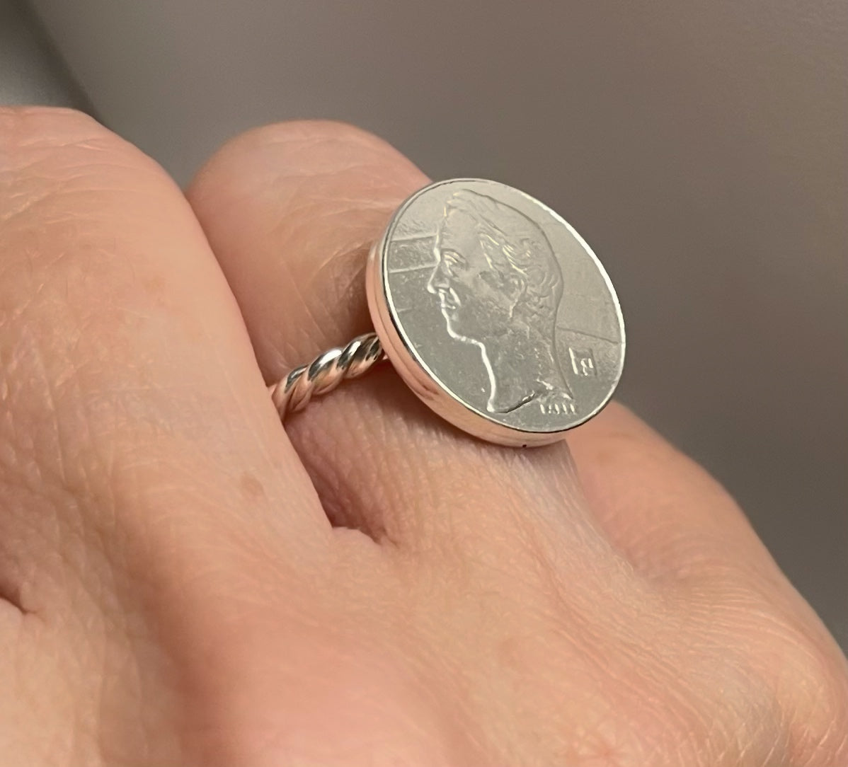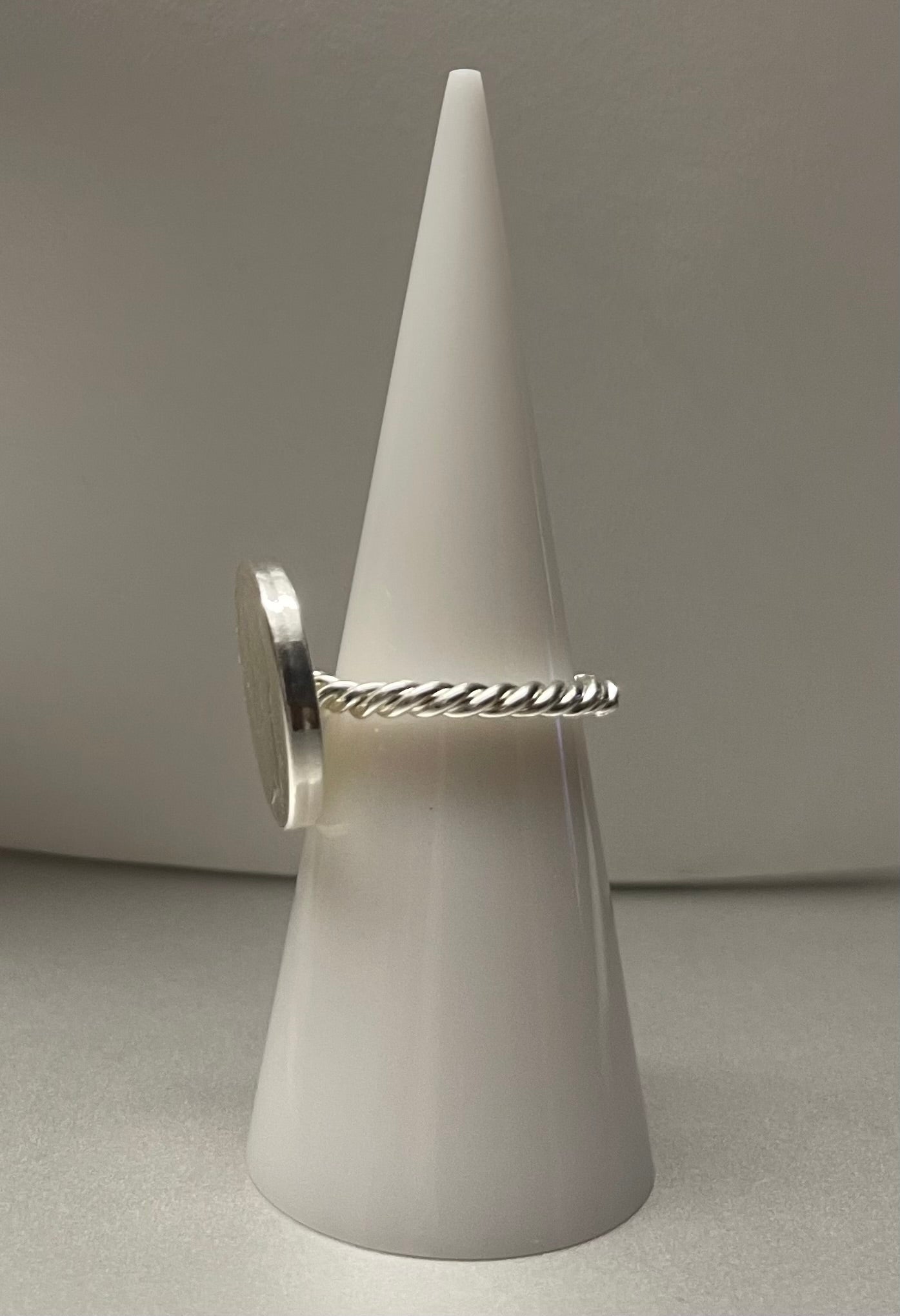 Anillo con base de hilo entrelazado, se puede hacer de plata, y de cobre con baño de oro o plata.