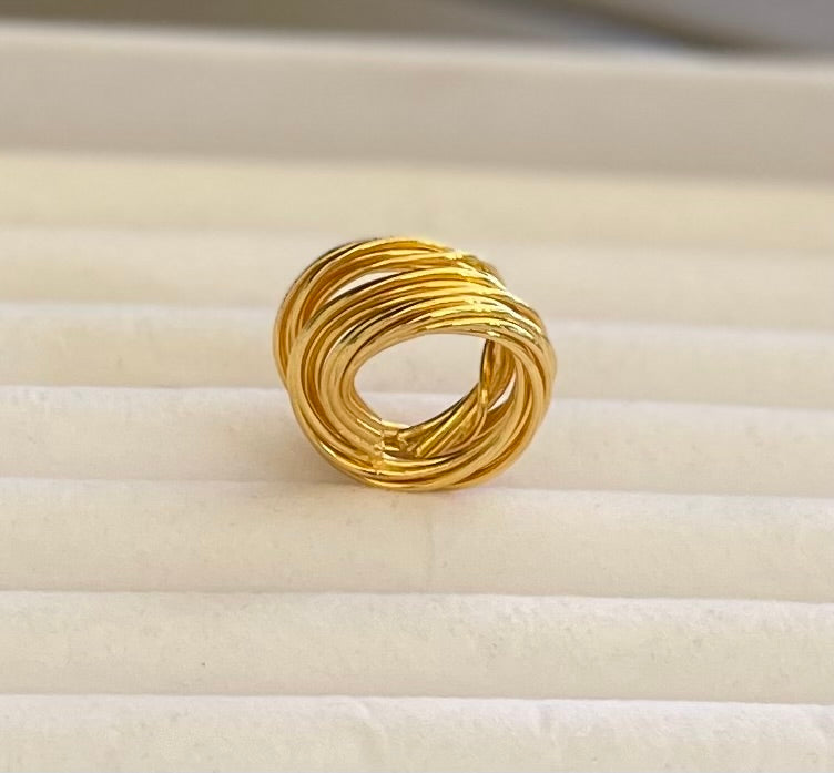 Anillo hecho a mano con hilo de cobre entorchado en 3 vueltas con baño de oro 18k