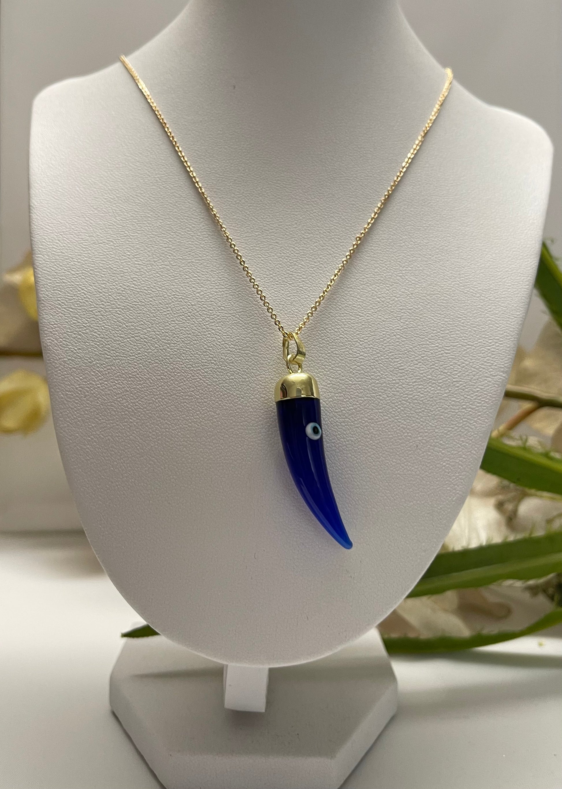 Cadena corta de goldfilled con dije de cachito azul con ojo turco