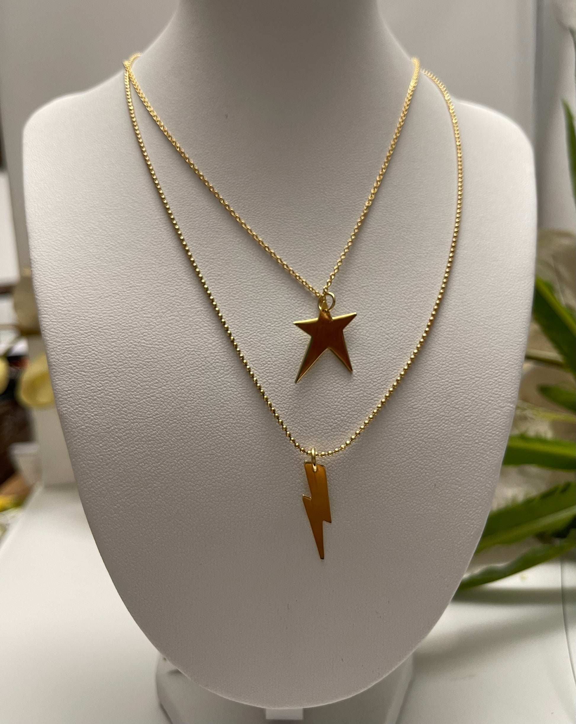 Cadenas de goldfilled con dijes calados a mano de estrella o rayito, de cobre con baño de oro