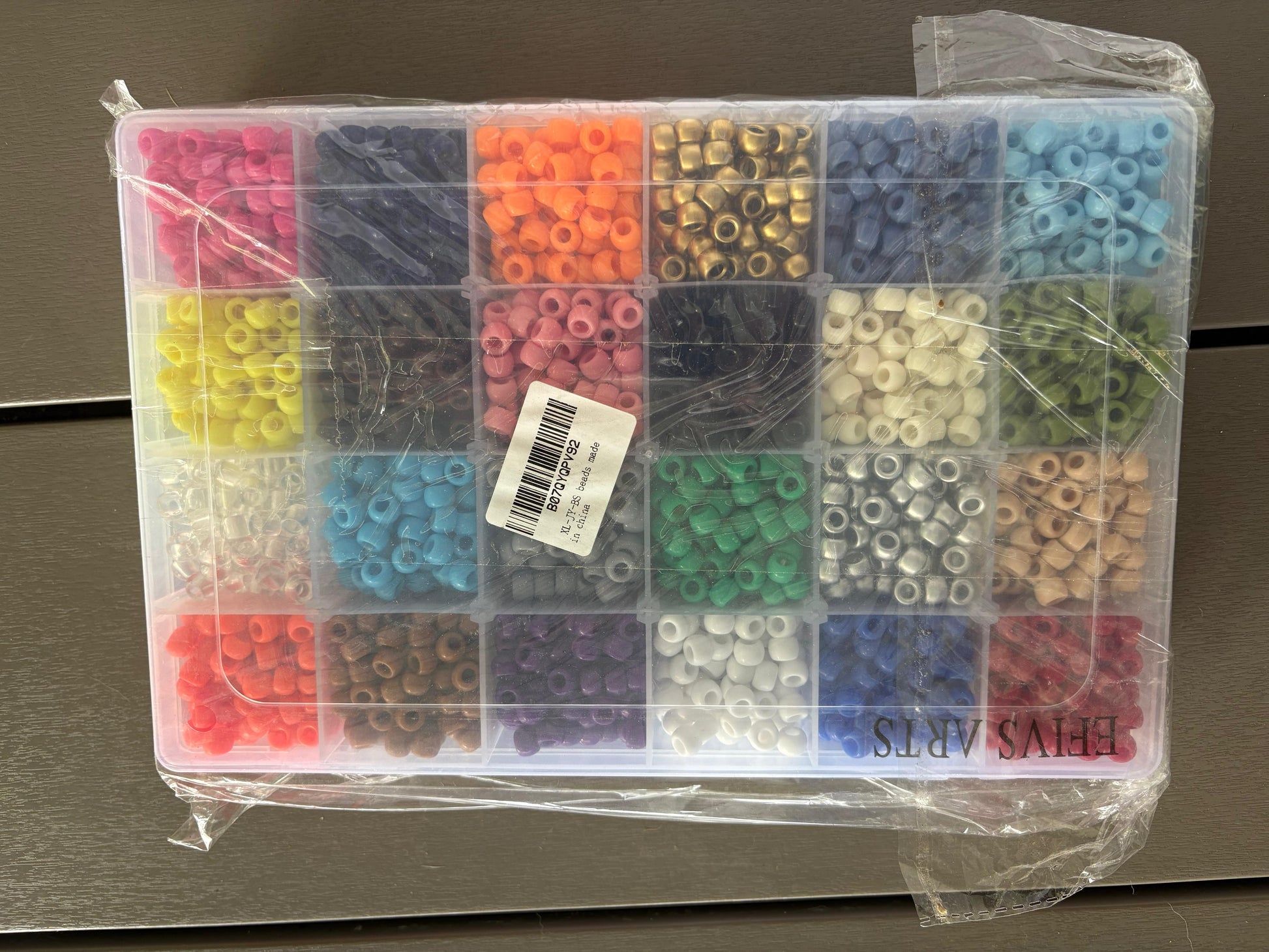 Caja de mostacillas de 4mm x 6mm de variados colors para elaboración de bisutería