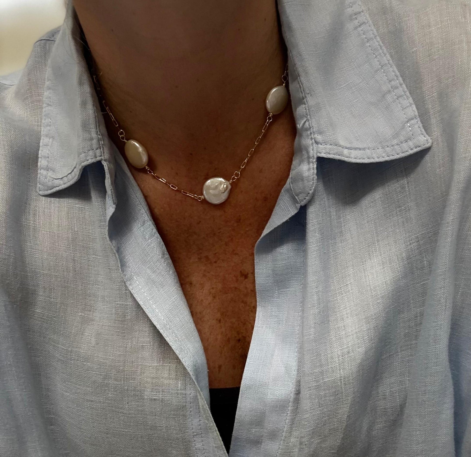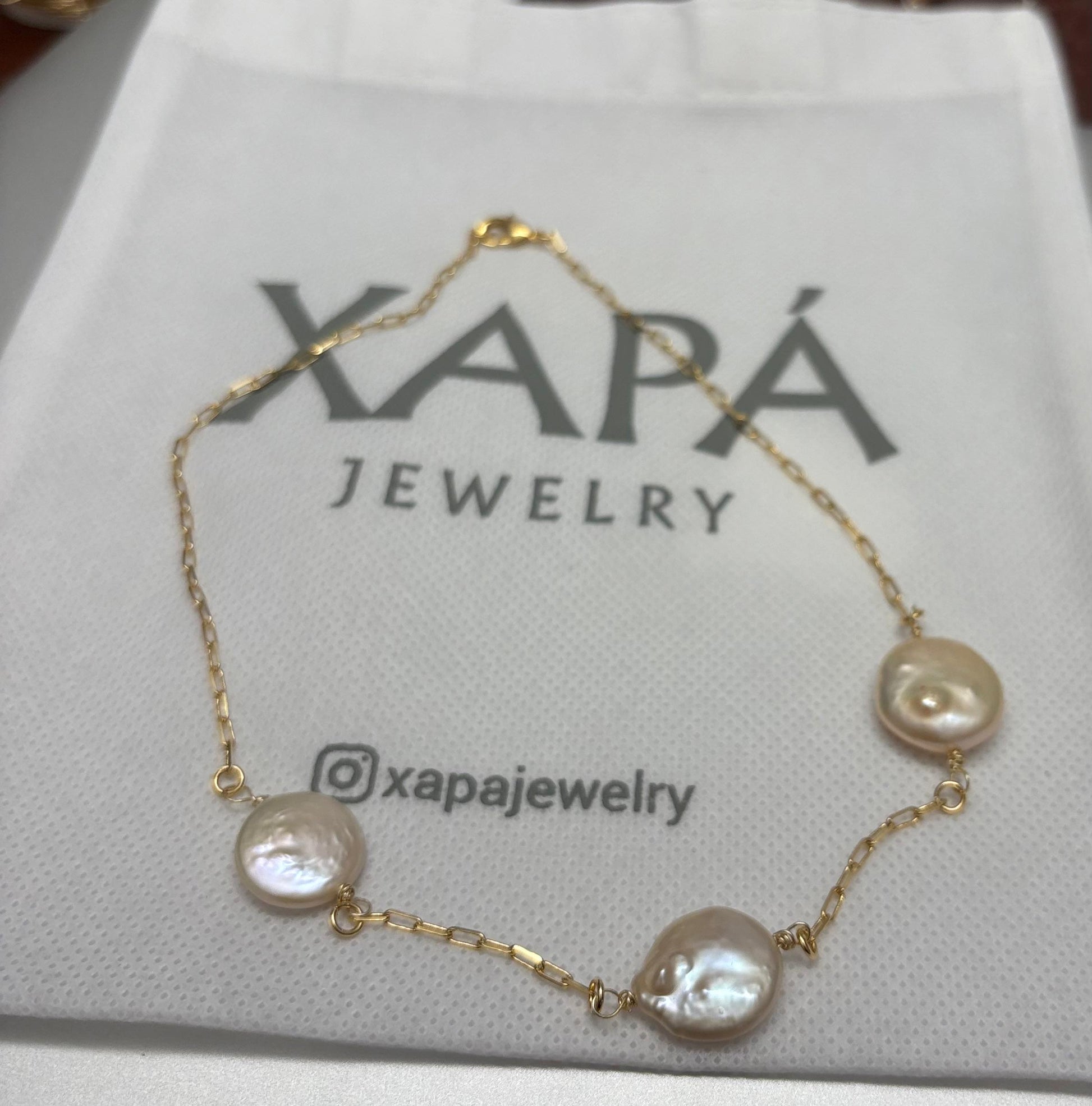 Cadena corta de 40cm, con dijes de perlas naturales. Se puede hacer del largo deseado.