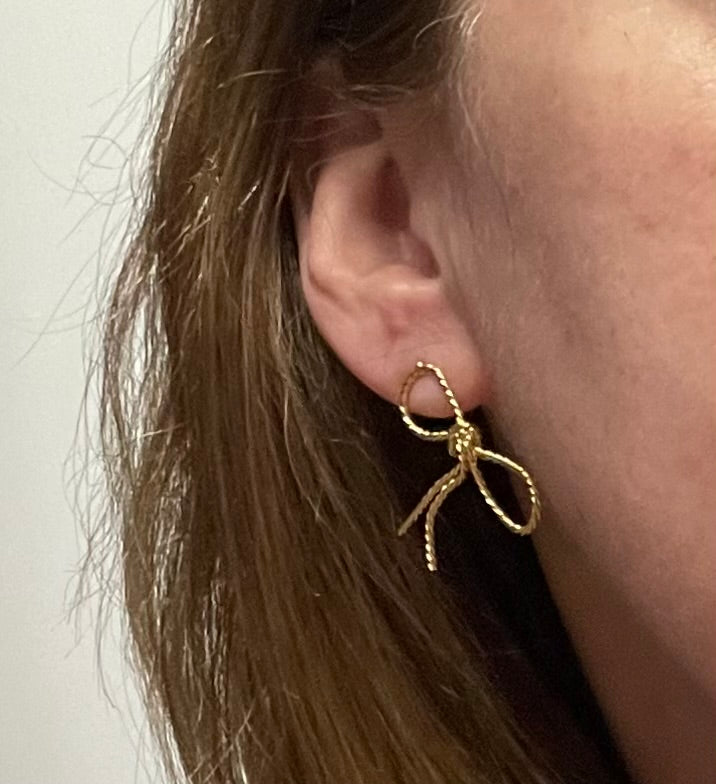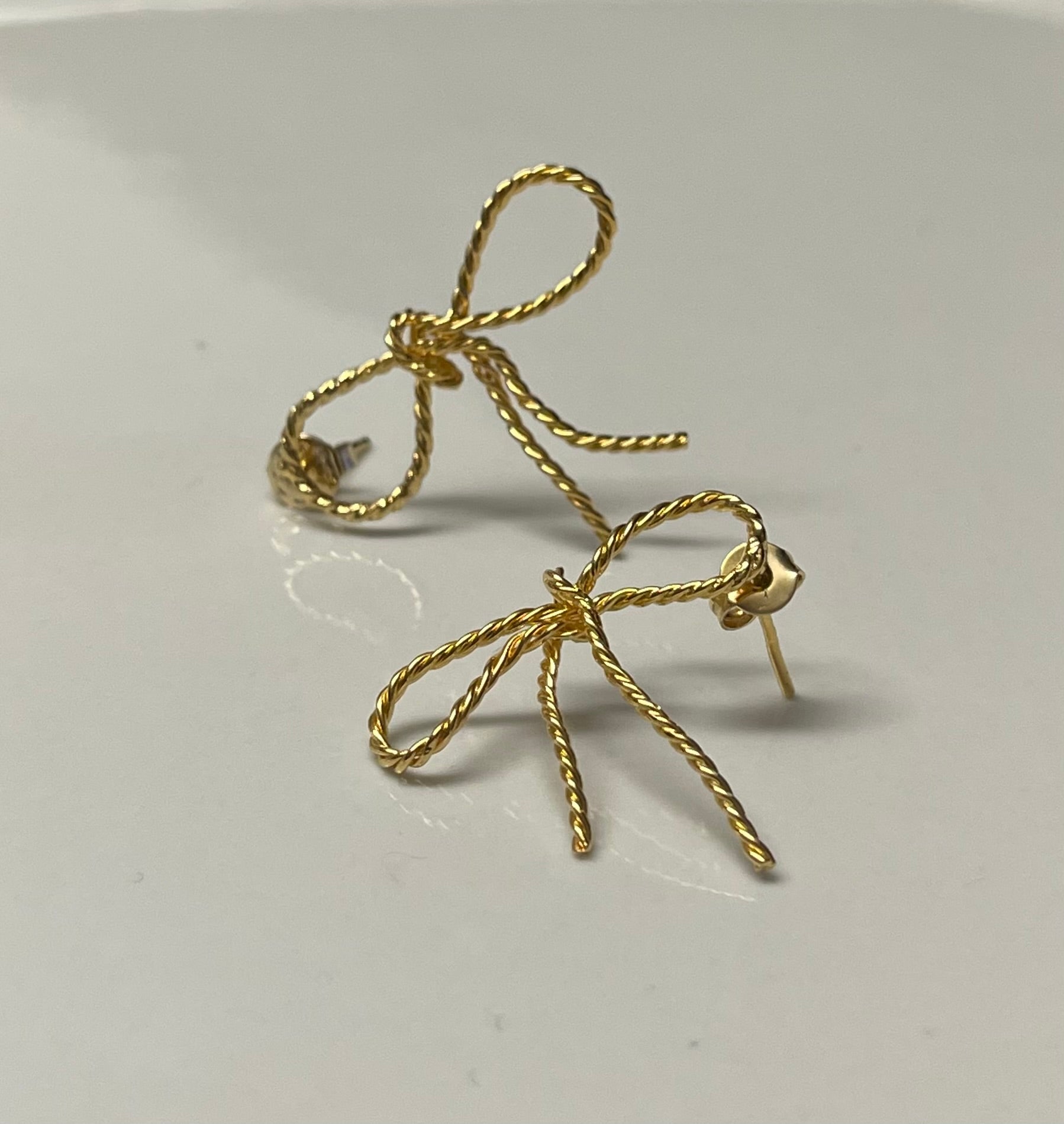 Zarcillos en foma de lazos, hechos a mano de cobre con baño de oro 18K