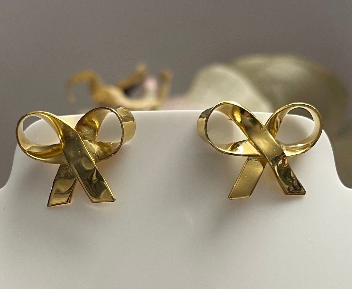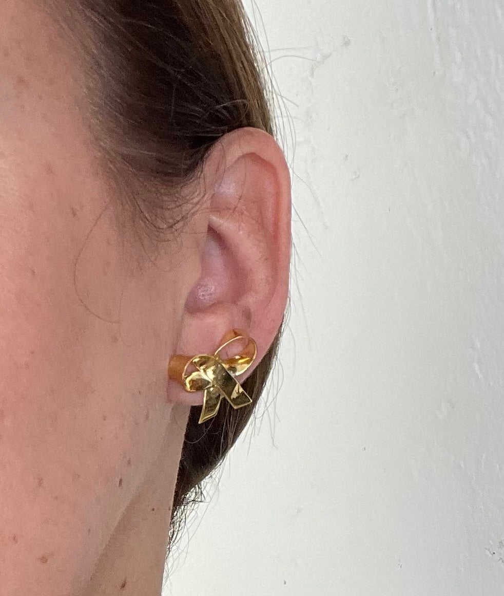 Zarcillos en forma de lazos hechos a mano en cobre con baño de oro.