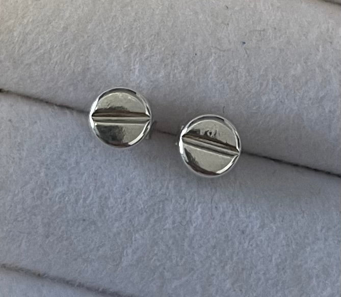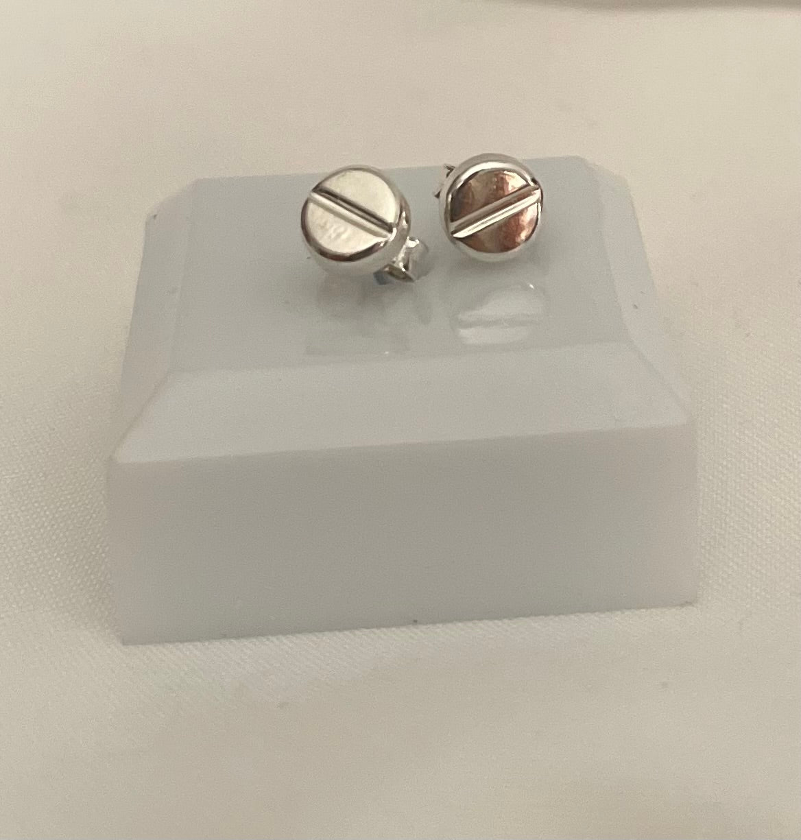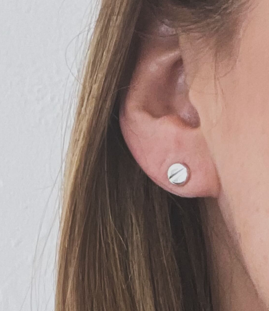 Zarcillos de tornillos de plata de ley 925, mide 0,6 cm de diámetro.